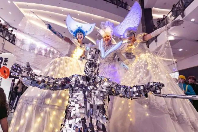 Unter dem neuen Motto „New Magic meets ALEXA“ rückte AD AGENDA in bewährter Weise das populäre Shoppingcenter am Alexanderplatz in den Fokus von Passanten und Besuchern aus aller Welt. Spektakuläre Stelzen-Acts und Walk-Acts in fantasievollen Kostümen mischten sich auf dem Alexanderplatz „unters Volk“ und animierten die zahlreichen Gäste zu einem Besuch von Berlins führendem Einkaufszentrum.